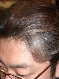 左フェイスラインに特に白髪があり、ホームカラーでは